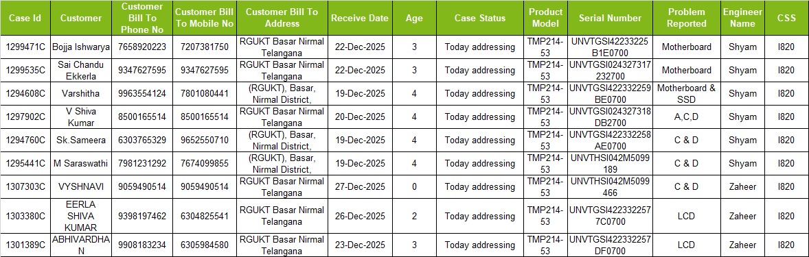 The students listed below are requested to report to AB-I (opposite Room No. 205 – Hardware Room) regarding their laptop issues. The list of students is attached for your reference.