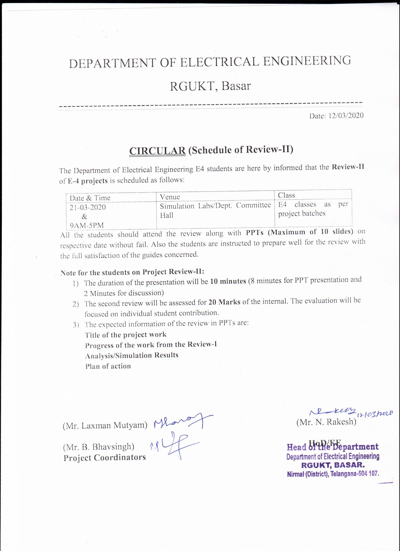 For any clarification/modification in the time table, please bring to the notice of Exam Section immediately through the department head.